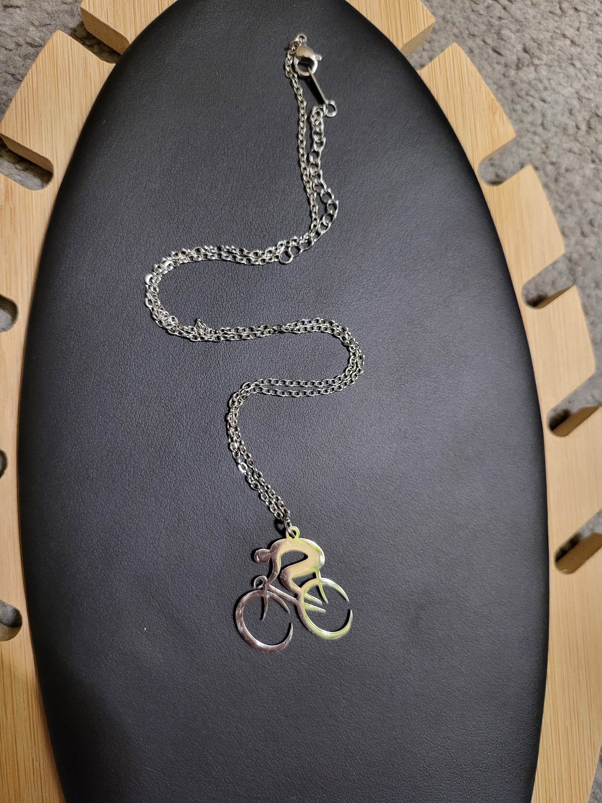 Perfect for cycling enthusiasts or anyone who appreciates unique jewelry, this necklace combines functionality with a touch of charm.
